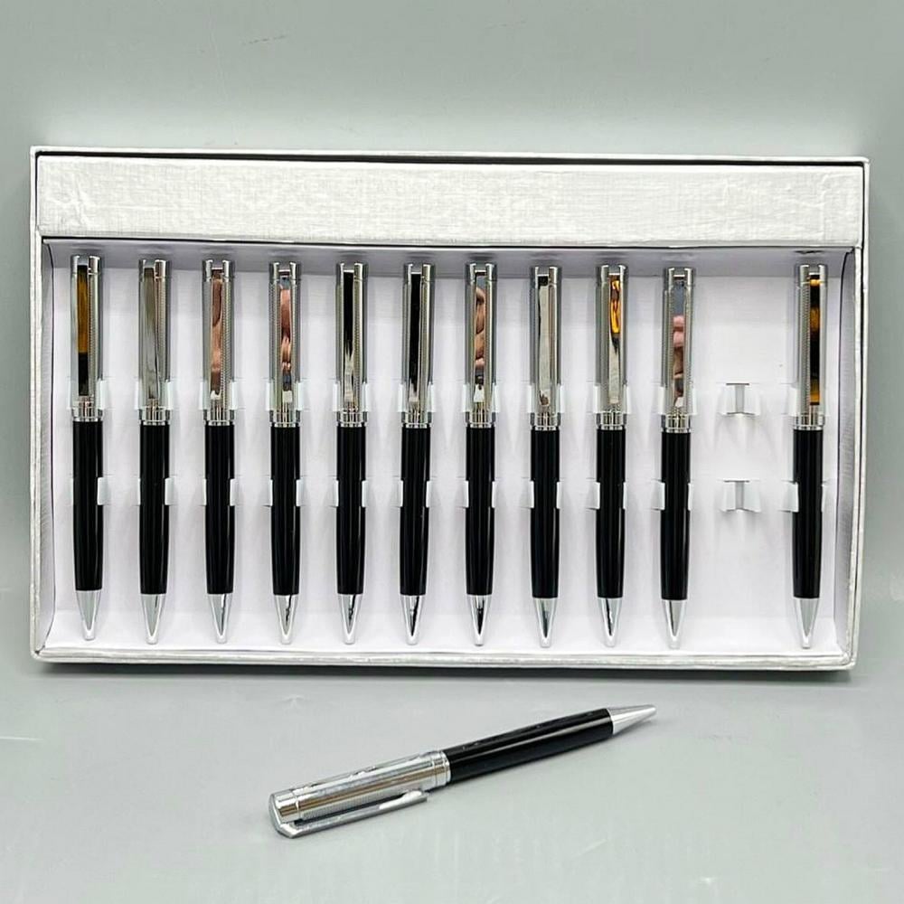 - تشكيلة مختارة من الأقلام المعدنية المطلية (أسود لامع، أبيض، فضي، ذهبي)
